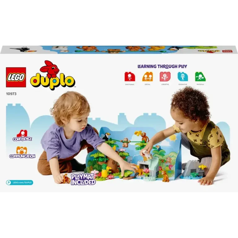 Das LEGO® DUPLO Set Wilde Tiere Südamerikas (10973) ist eine abenteuerliche Spielwiese für Kinder ab 2 Jahren, die neugierig die Tierwelt erkunden möchten. Ideal für kleine Tierliebhaber, schafft dieses Set eine tolle Dschungelerfahrung, die gleichzeitig wichtige Lernelemente betont. Mit dem realitätsgetreuen Set lernen Kinder spielerisch die wilden Tiere Südamerikas kennen und können ihre Eltern bei spannenden Entwicklungsfortschritten begleiten.